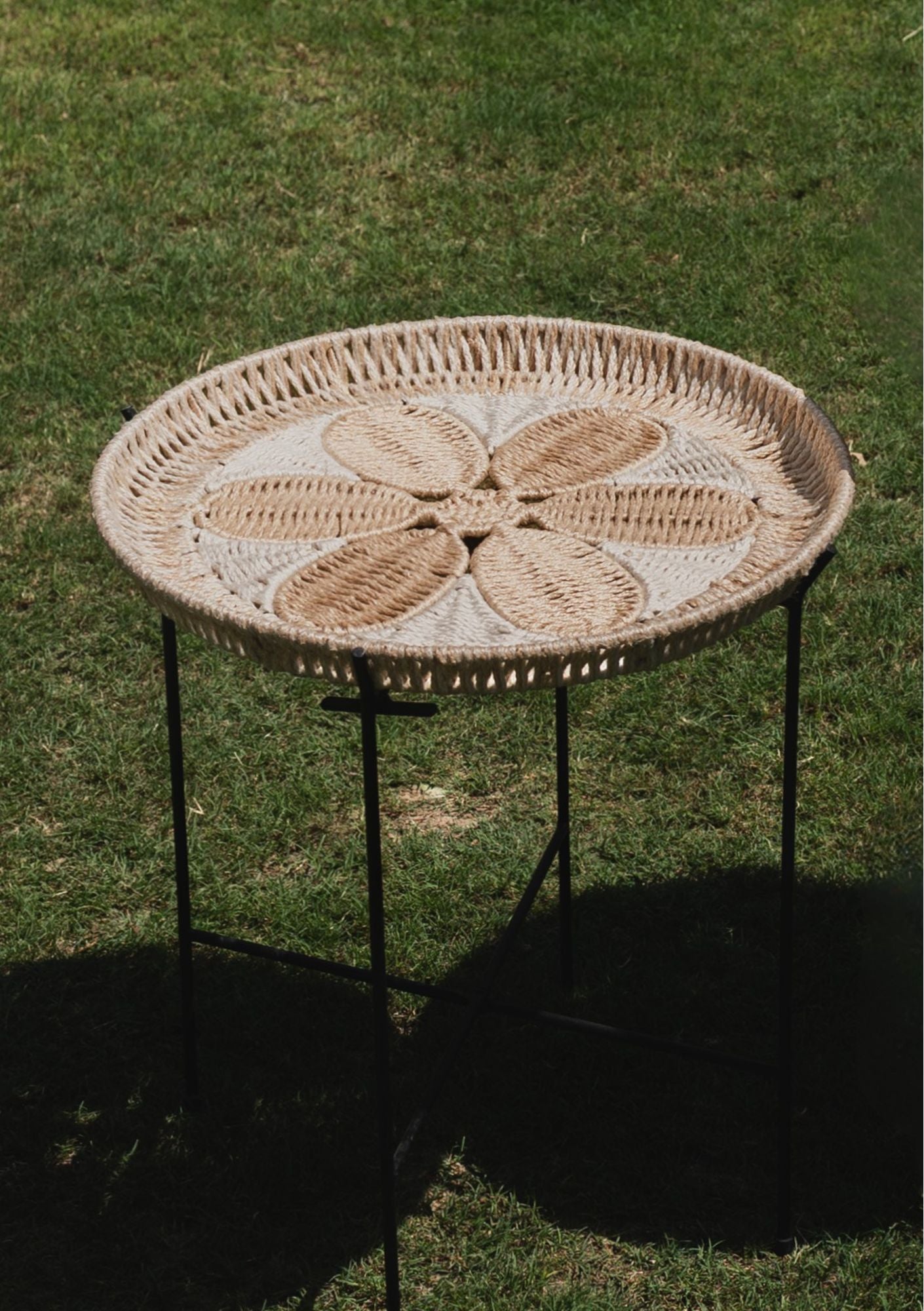 Add a touch of elegance to your entertaining with our Serve Tray Table. This round serving table boasts beautiful flower RPET weaving and tray-like edges, making it both stylish and practical. Whether you're hosting a garden party or serving drinks on the patio, this table is sure to impress. Crafted from recycled plastic, it's as sustainable as it is stunning. So elevate your hosting game and serve in style with our Serve Tray Table.