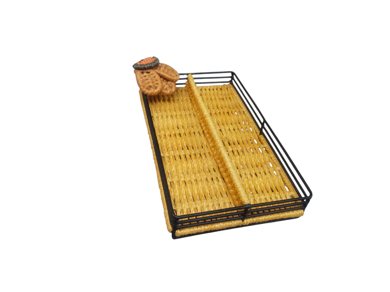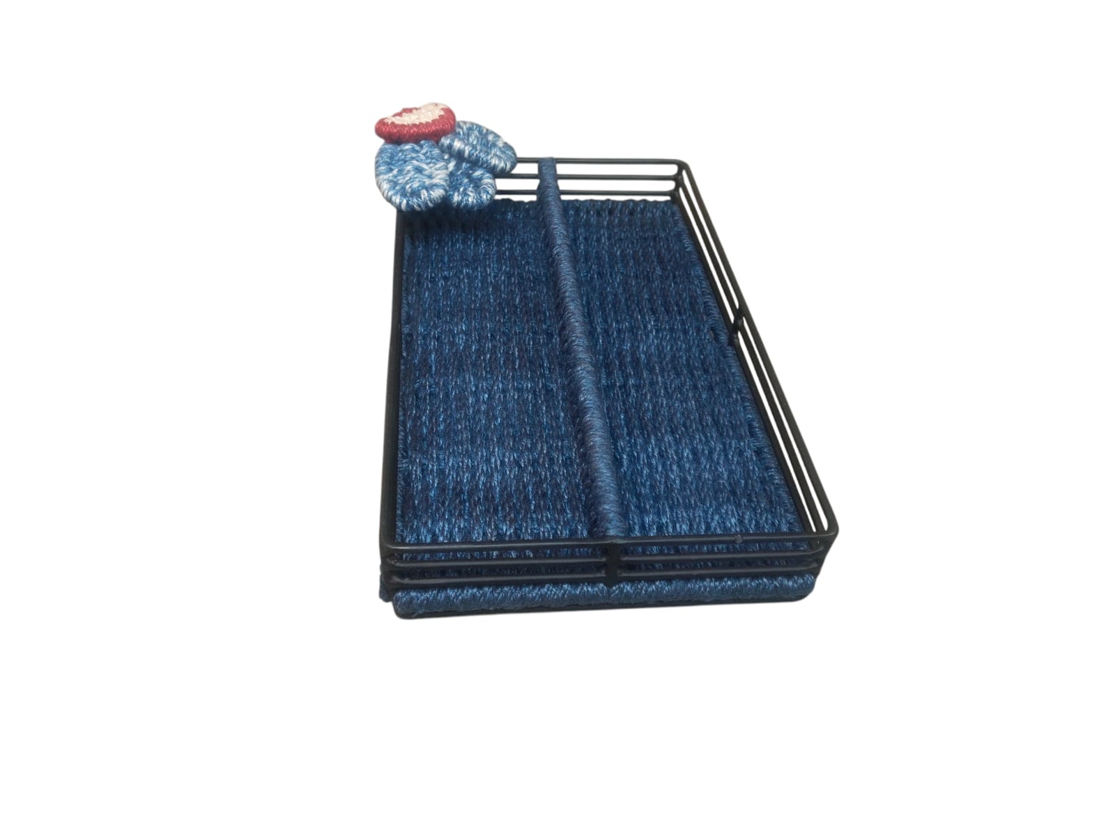 The Reborn Free Cutlery Organiser is a crafted essential that brings both order and style to your table. Handwoven in yarn with a sturdy iron frame, it’s designed to hold and separate cutlery neatly, whether for everyday meals or festive spreads. What makes it stand out is the delicate yarn flower detailing, a cheerful touch that softens its structured form and adds a hint of playfulness to its earthy design. Practical in purpose yet styled in detail, this organiser turns a simple utility into a statement piece.