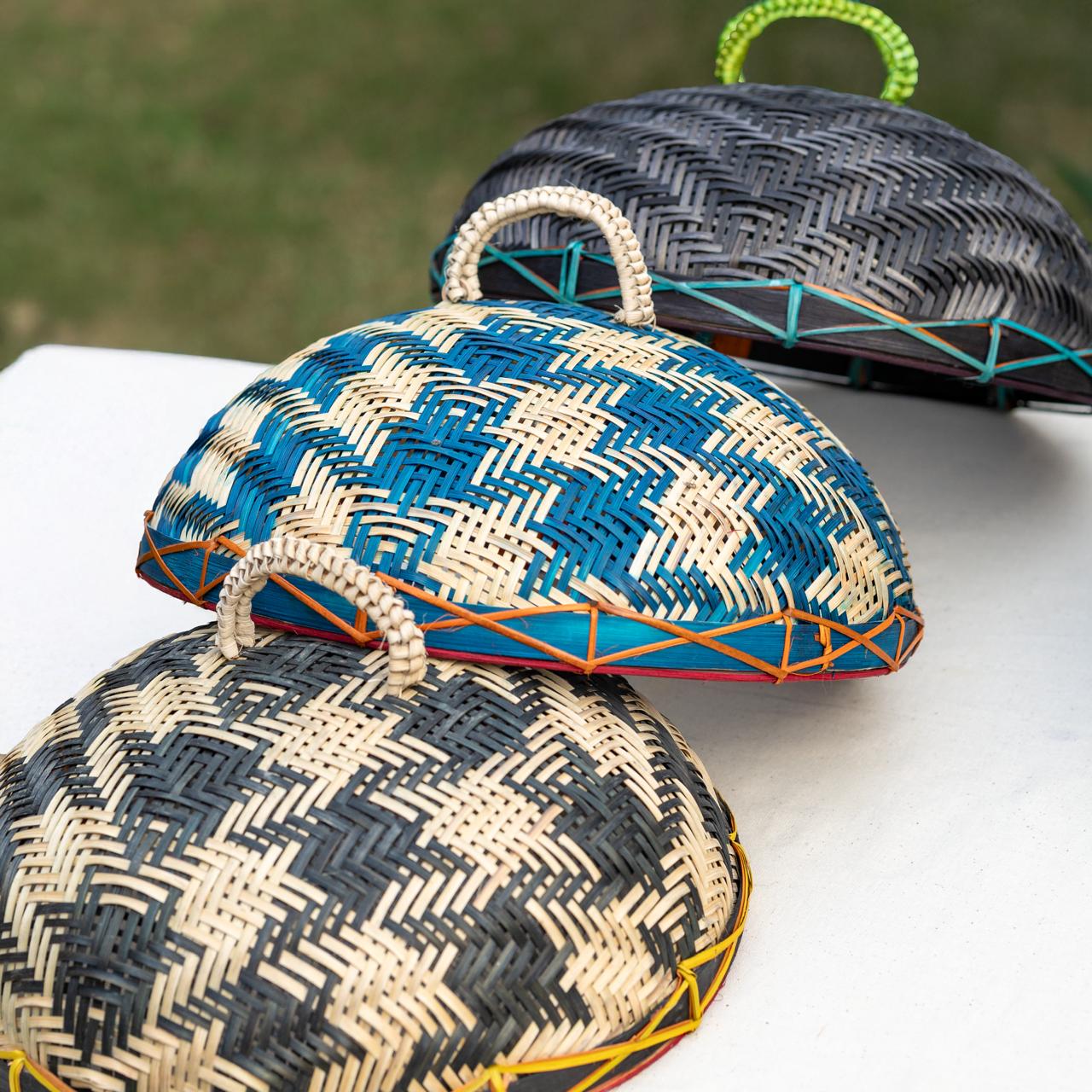 Available in three striking weaves, Black & White, Blue & White, and Classic Black, each cloche brings its own personality while celebrating the timeless craft of bamboo weaving.