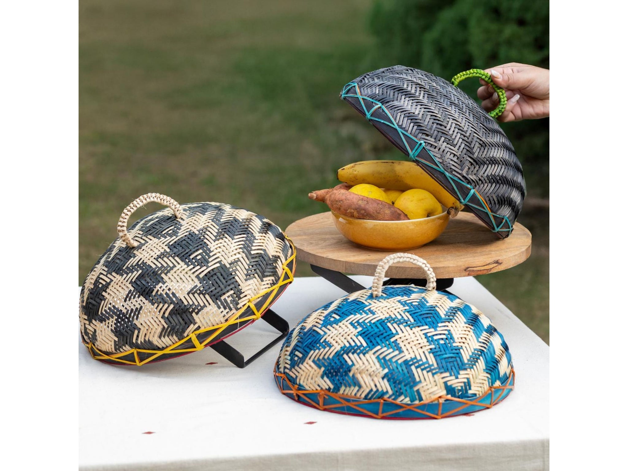 Handwoven in natural bamboo and finished with vibrant edge detailing, our Bamboo Cloche is where everyday utility meets handcrafted charm. Lightweight yet sturdy, it keeps your food protected while adding a beautiful artisanal touch to your table, indoors or out in the garden.