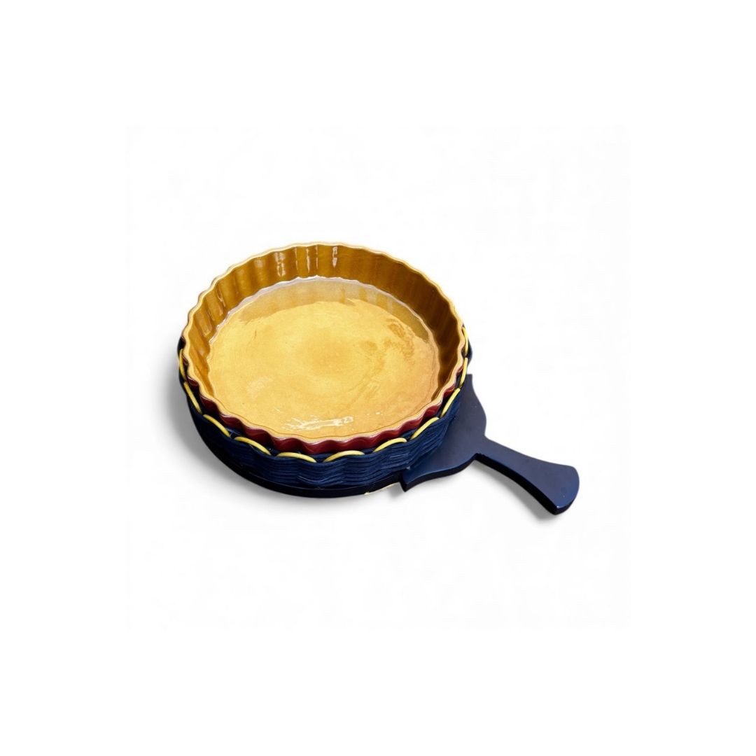 Where rustic charm meets everyday utility. The Cottage Country Quiche Basket pairs a scallop-edged ceramic dish in warm amber and burnt orange tones with a handwoven cane basket and sturdy wooden base. Perfect for quiches, baked pastas, or festive tarts, the basket cushions the dish while the handle makes serving effortless. And when the baking’s done, simply lift the removable dish for easy cleaning or to serve it solo. It’s a piece that works hard in the kitchen but looks right at home on the table.