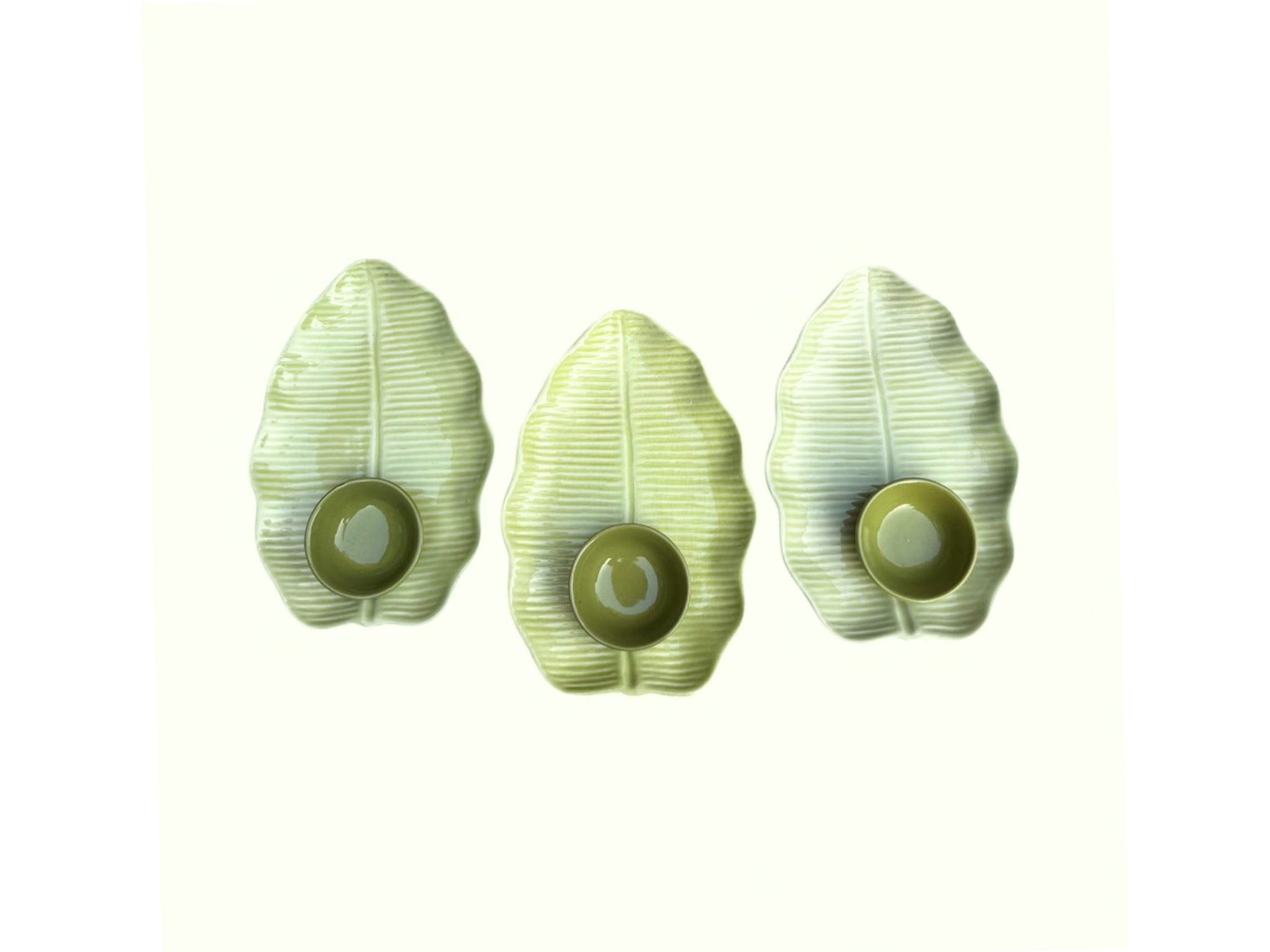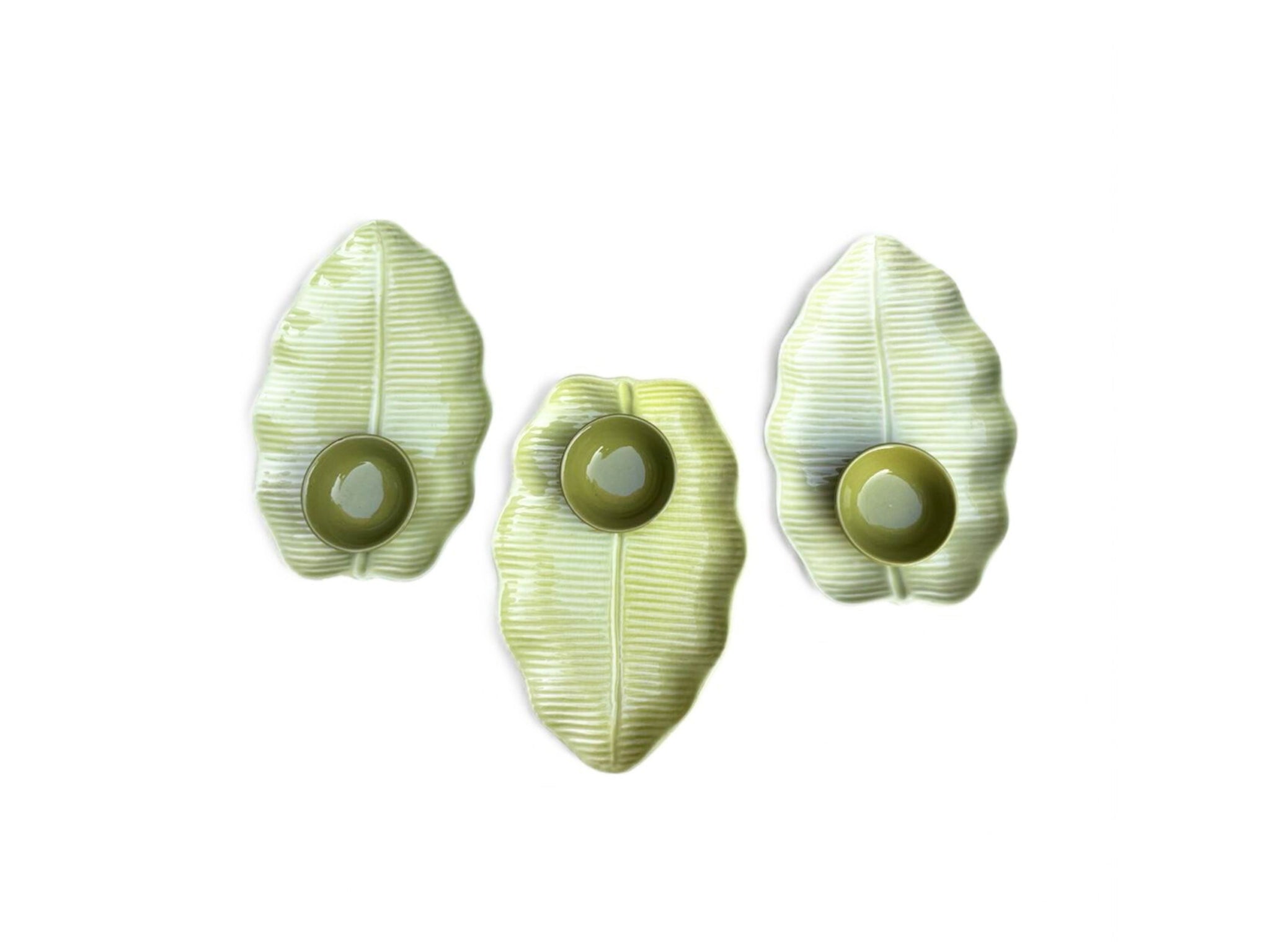 Inspired by nature’s form and finished in a timeless green glaze, this set of three leaf-shaped plates brings a touch of playfulness to your table. Their organic silhouette makes them perfect for starters, sweets, or snacks, while the smooth glaze adds an elegance that balances the whimsical design. As a trio, they work beautifully together as a coordinated set, but they’re equally striking used individually as accents. Functional yet decorative, they’re the kind of Serveware that sparks conversation.