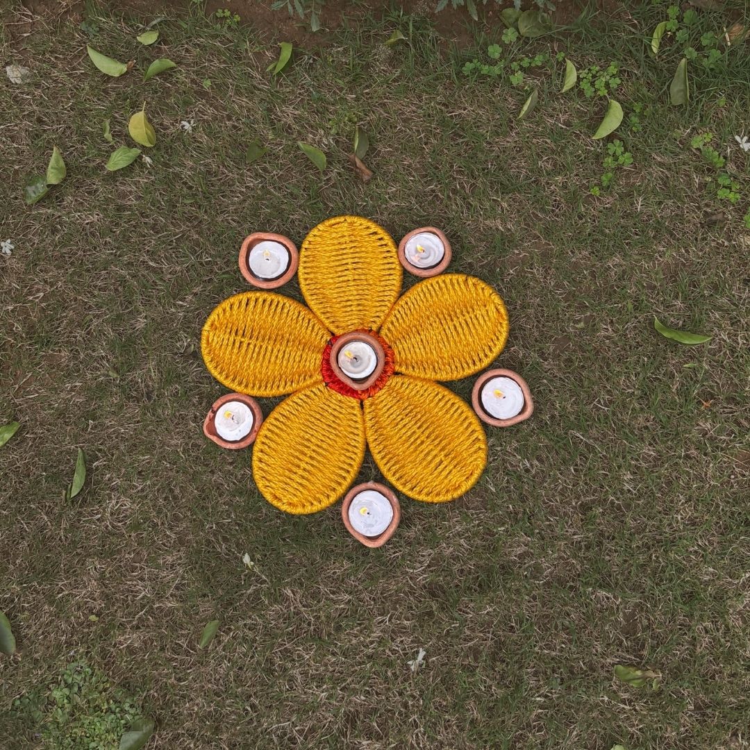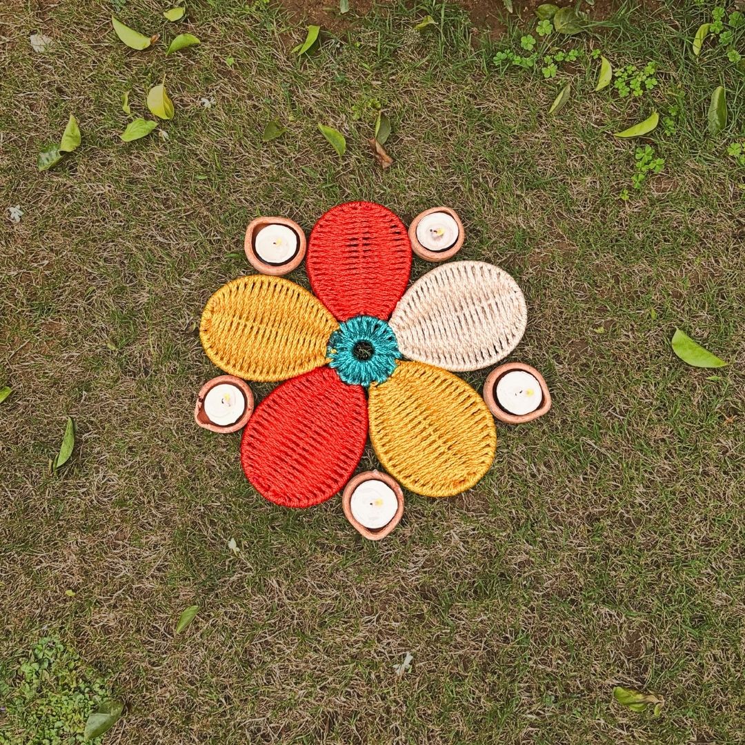Bright, playful, and full of charm, the Phool Rangoli (Small) is a handcrafted bloom that lights up any space with warmth and color. Woven from recycled yarn, each petal adds a soft texture and joyful vibrance, turning every corner into a little celebration of craft.